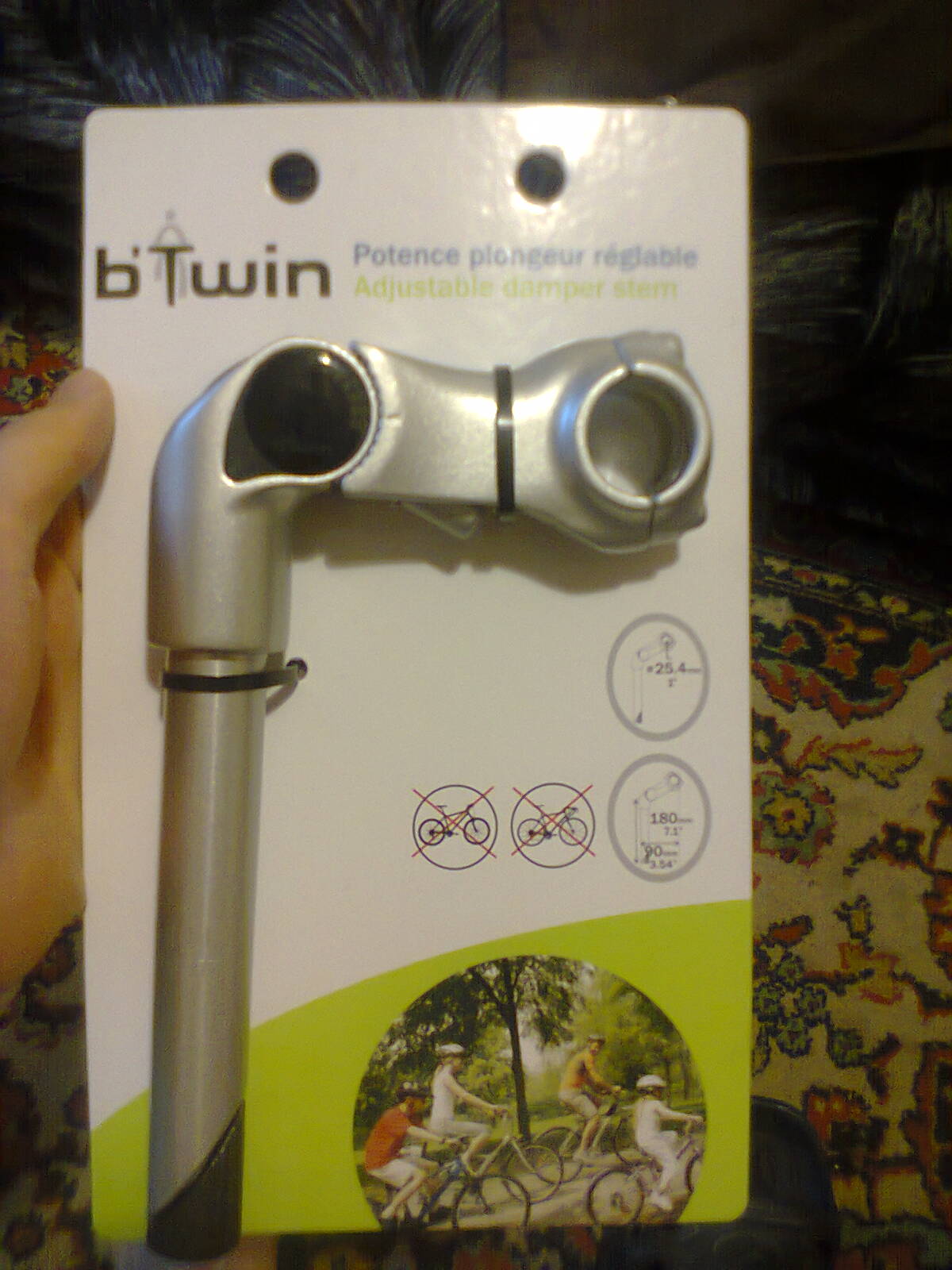 Купил в Декатлоне, диаметр стойки 22мм.(как на советском велосипеде) , диаметр на выносе 25,4мм (это уже на современный руль). Тюнингом старого велосипеда занялся из-за большого веса велосипеда, ну и шутки ради. Поменял крылья на пластиковые, сиденье на пластиковое, убрал багажник, заменил звезду заднюю с большим количеством зубов. Теперь время пришло для легкого руля, фото с рулем пока не сделал, позже выложу.