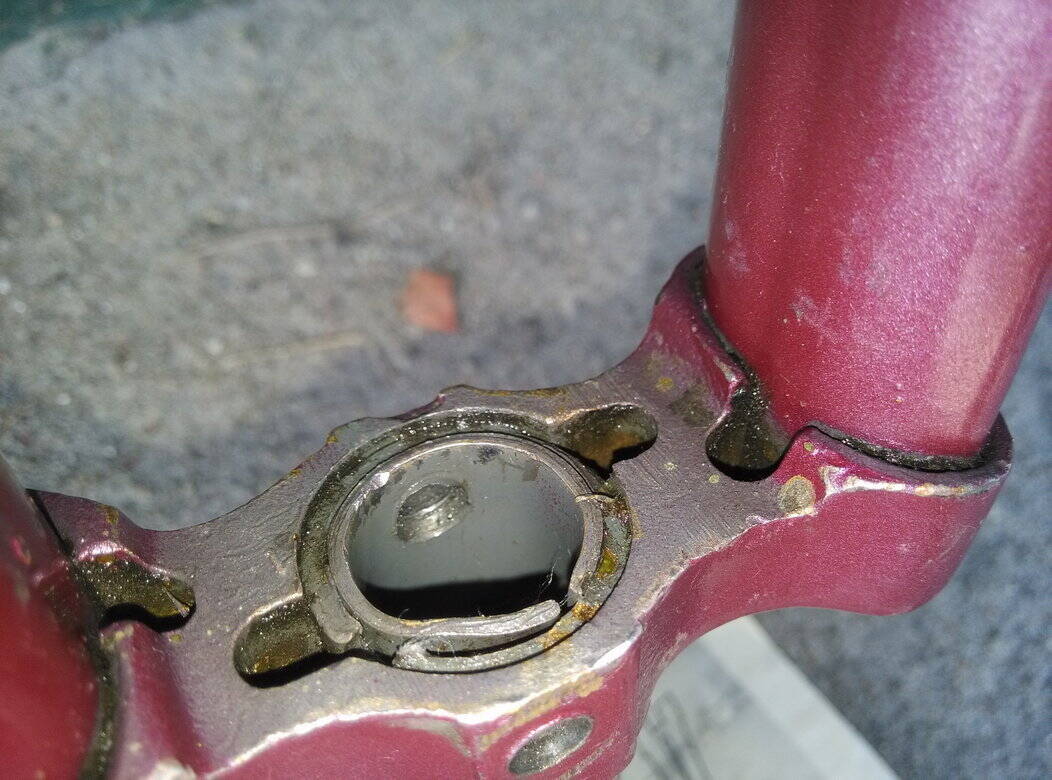 в нижнем сепараторном подшипнике всё засохло настолько, что вместо подшипника работал нижний конус, и протер в вилке знатную канаву (фото)