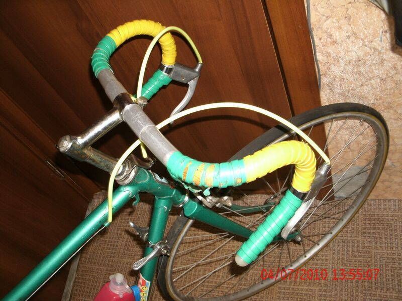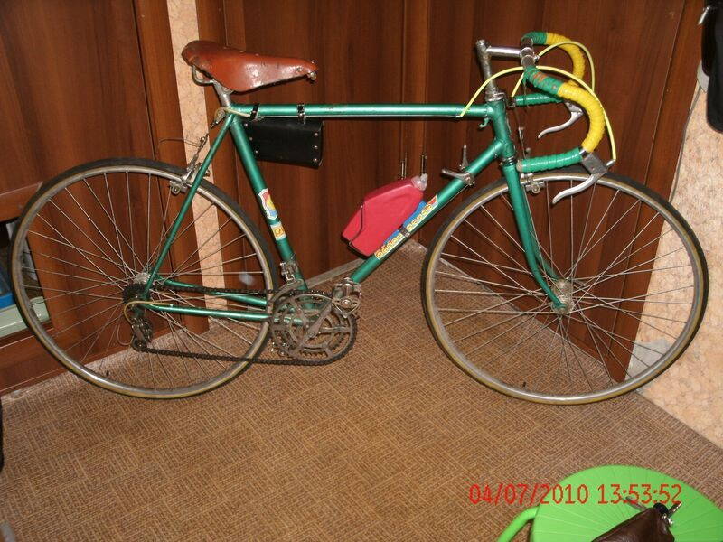 Относительно недавно я стал обладателем "мечты детства" велосипедом Старт-Шоссе. Судя по цифрам на дропауте год выпуска 85, рама девятнадцатая (правильно расшифровал?). Для своего возроста старичок вполне неплохо сохранился. Как я понял предидущего владельца ездили на нем мало и большую часть времени он пролежал в гараже. Механика работает почти идеально. Передний переклюк вообще без нареканий, задний нехочет перекидывать на последнюю, самую большую звездочку. Тормоза мертвые, колодки новье. Так же необходимо чутка подрегулировать. В задней втулке небольшой люфт. Достался полностью комплектным, с набором инструмента, насосом, флягой и багажником, который я в данный момент снял. Почитав форум загорелся идеей кродоливодства. Пока в планах заменить обода и покрышки, привести в порядок руль убрав изоленту, ну и попытаюсь отремонтировать седло, уж очень оно мне нравится. Раму красить небуду. Состояние лакокрасочного покрытия вполне. Пока так.