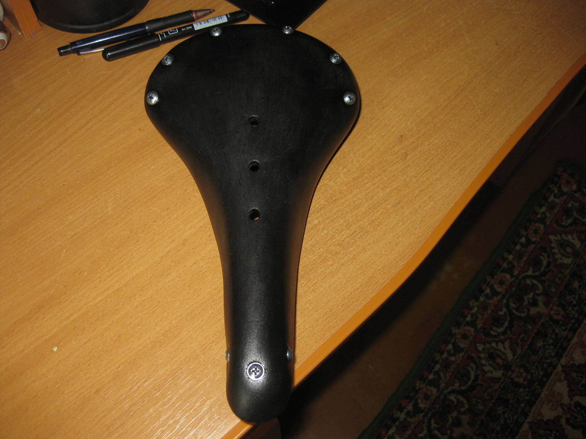 6) Купил дешевый бесцветный воск "Силвер" за 12.50 в АТБ и обработал снаружи и внутри. Седло сразу стало блестеть, но есть одно но- после "воска" поплыла краска и начала пачкать руки. Теперь беспокоюсь, чтоб седло не мазало штаны. После высыхания, по крайней мере, руки уже не пачкает.