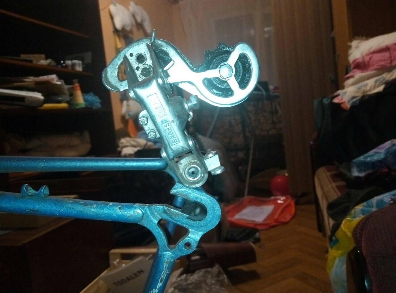 На нем стояли родные переключатели и манетки sachs huret, решил я их заменить на более качественные и взял Бу shimano 105, но здесь возникла большая проблема. Я снял передний переключатель и манетки и приступил к снятию заднего и совершенно не пойму как он снимается(и снимается ли вообще?) у меня такое чувство что он намертво вставлен в резьбу рамы. Здесь нет никаких шестигранников или резьбы. Фото прилагаются.