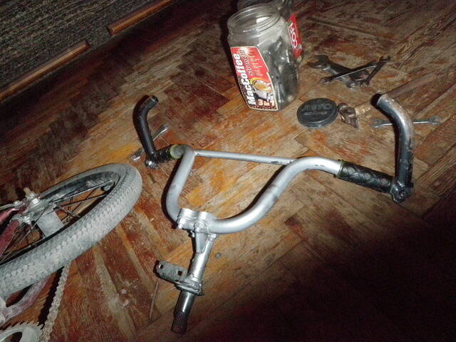 Пару детских велов сейчас кручу в гараже. Один наверное останется про запас, а один дружалик забирает дочери. Так вот, велы эти несколько лет жили у мну на дальней даче. Это на Арабатской стрелке. Так как дача дальняя перешла в разряд воспоминаний, то велы переехали обратно в Днепр. Ну, простояли они в гараже с осени 2013 года и, должен сказать, что чуть не умерли полностью. Соленый морской воздух сделал свое губительное дело со всеми блестящими поверхностями. Но пескоструй и порошковая краска рулят. Велы будут скоро как новенькие. Правда на один вел пришлось приобретать пару совершенно новых колес... 260 грн. за переднее и заднее без втулки. Ну и подшипники в рулевое и Кареточный узел новые зашли. А так все остальное вполне пригодно для дальнейшей эксплуатации оказалось.