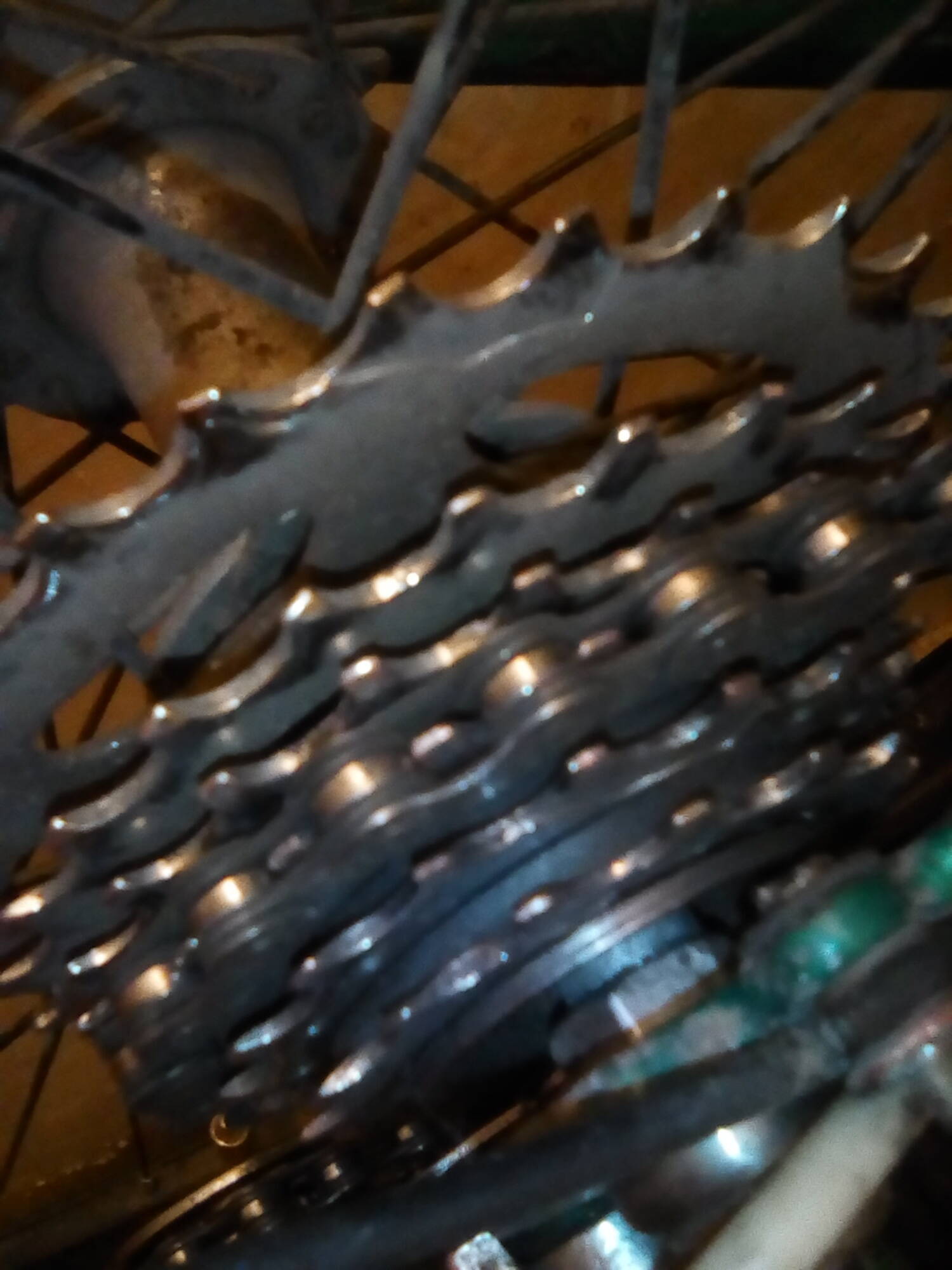 Трещётка, китайцы суки, наклепали звёзды из говна. Сначала оторвало пару зубьев (пробег около 80км), затем в пути развалилась одна из 7ми звёзд просто развалилась сегодня,(пробег примерно по ощущениям... 150 км), пришлось прогуляться до дома после поломки, благо был близко.