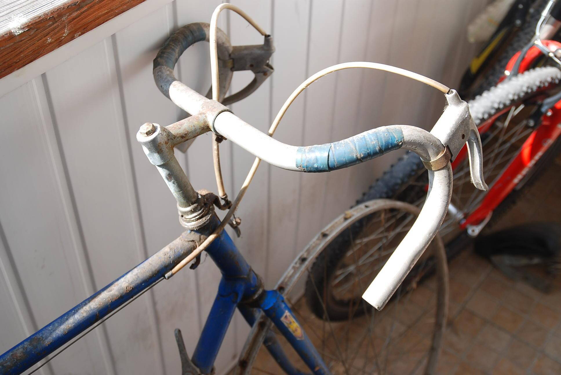 Власне ніяких особливих робіт з ним не проводилось, все як у мануалі від Кості про відновлення велосипеду. Замінив ручки гальмування на шиманівськи, бо зручніше їздити верхнім хватом за слони та через можливість пустити тросіки під обмоткою. Обмотка, доречі, дуже бюджетна – шматок кожзаму за 30 грн., під ним шматок старої камери, поверх якої ізолента на тканиновій основі. На сезон-другий такої обмотки цілком вистачає. Звісно вона мабуть не така приємна на дотик як шкіряна або з кіперної ленти, але приєміша ніж дешева китайська обмотка з якоїсь еластичної піни. Пробував.