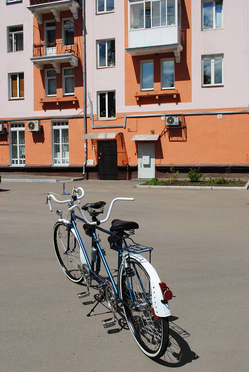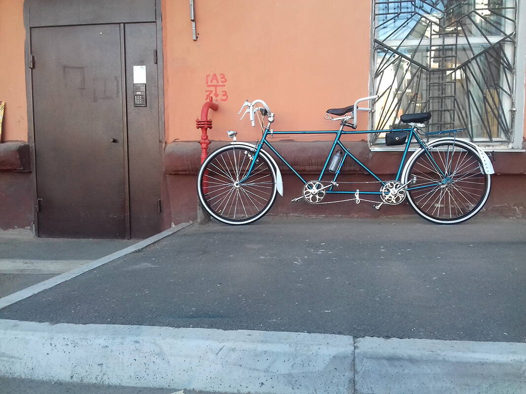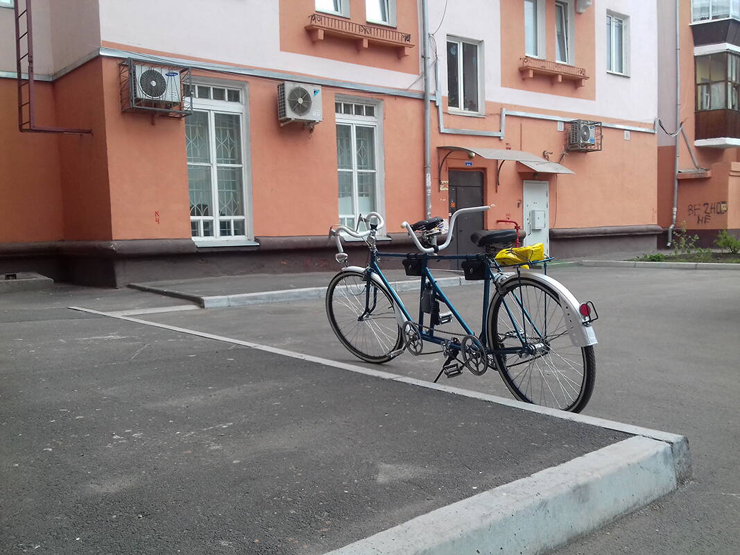 Вторая причина: банальное отсутствие денег «на апгрейд». Конечно, хотелось чего-то большего, чем характеристики стандартного ХВЗ 197 – 411 «Тандем» , ведь технологии идут вперед семимильными шагами, глупо это отрицать, а при должном уходе даже детали, купленные по вполне приемлемым ценам будут служить верой и правдой. Прогресс не стоит на месте, тандем штука тяжелая, а на безопасности экономить не стоит. Ему как воздух необходимы: как минимум 18 скоростей, хорошие тормоза (V-brake либо дисковые тормоза), надежные колеса (прочные и имеющие высокую степень жесткости на изгиб и скручивание двойные обода, с более высоким профилем), новая система ведущих звезд, которые изначально рассчитаны на установку только на картридж-каретку, а значит и замена советских кареток на современный «квадрат». Ресурс, как известно, есть у всего, а значит, как бы хорошо ни сохранились советские компоненты, рано или поздно неизбежен момент износа конусов на валах кареток, после которого наступает конец нормальному кручению. Постоянный люфт в каретке, стук и скрипы, как и разбитые клиньями гнезда, уже не способные нормально фиксировать шатуны постоянно будут напоминать о себе, не говоря уже о спицах ХВЗ, которые шли совсем уж тонкие, а обода по сравнению с современными двустенными и вовсе «бумажные», приобретают постоянные «восьмерки», а то и «яйцо» на обычном велосипеде и в принципе непригодны для тандема. Трансмиссию можно собрать лишь на 8-10 скоростей с соотношением 4х2 либо 5х2 , в современном мире этого, мягко говоря, недостаточно, не говоря уже об установке на тандем, для которого чем больше ряд пониженных передач – тем лучше. Да и как показывает практика: замена одного компонента потребует как по цепочке замены системы в сборе, либо данный «гибрид» будет работать некорректно. Восстановление советского велосипеда исключительно в оригинальном состоянии исключает возможность использовать его для комфортной езды на каждый день, т.к. он морально устарел. Это подходит для музеев, частных коллекций, но в современном мире не конкурентоспособно! В общем, детали приходилось докупать постепенно, это продолжалось до тех пор, пока не были собраны абсолютно все требуемые компоненты для переделки под желаемую конфигурацию. А пока тандем активно использовался, ведь негоже короткое сибирское лето велосипедисту проводить пешеходом.