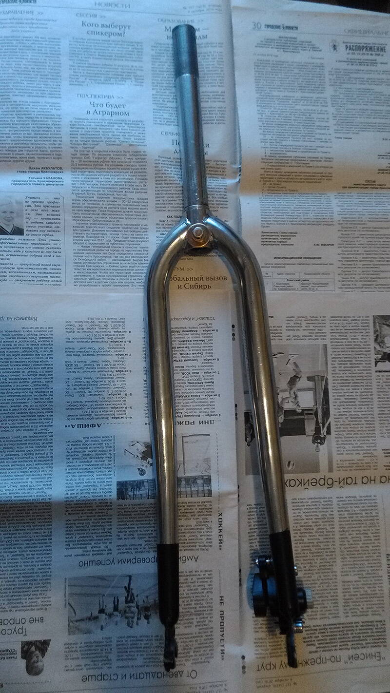 Судьба преподнесла щедрый подарок ,один хороший знакомый подарил жесткую резьбовую вилку с креплением под калипер дискового тормоза, в связи с этим появились мысли об усовершенствовании "Самовара".