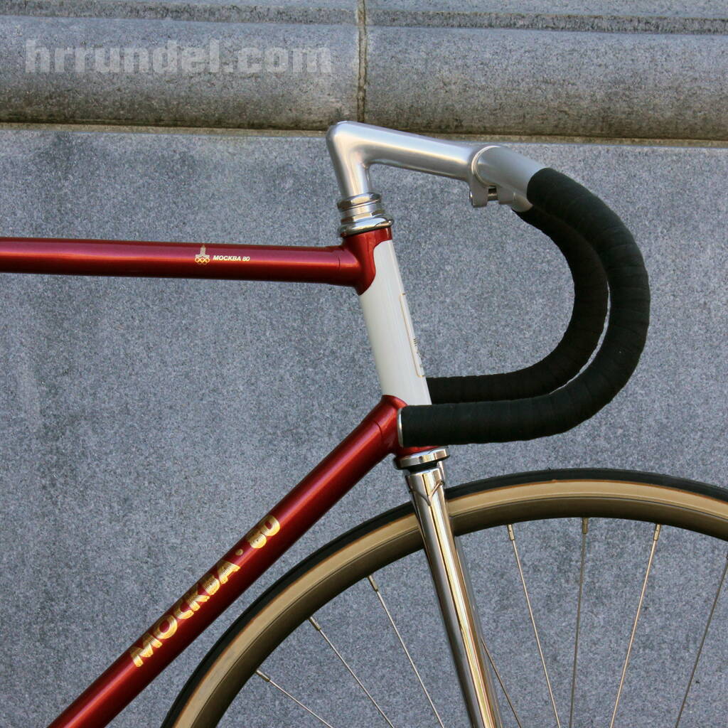 Вы безусловно правы .... трубы Витбер скорее всего были на предсерийных образцах , которые Панин испытывал в Сборной СССР . Серийные велосипеды скорее всего шли уже на Ишивате . Трековые , которые испытывал и доводил до серии Р.И.Воронцов строились именно на них . Кстати эксперементальные МОСКВА 80 красились в ярко алый цвет с жолтыми надписями ... это я лично видел и помню эту картинку очень ярко ! ...и мне очень повезло .. я тогда мог достаточно часто видеть оба велосипеда / трековый и шоссейный / . Первый , на треке Динамо / после своих тренировок мы наблюдали исытание Реджинальдом Ивановичем трековой МОСКВЫ 80 / . Второй , в собственном дворе / шоссейная МОСКВА 80 Валерия Мовчана / . Окрас велосипедов послеолимпийских был уже другой . Вот приблизительно такой же цвет , как и моей , у трековой Восмидесятки .