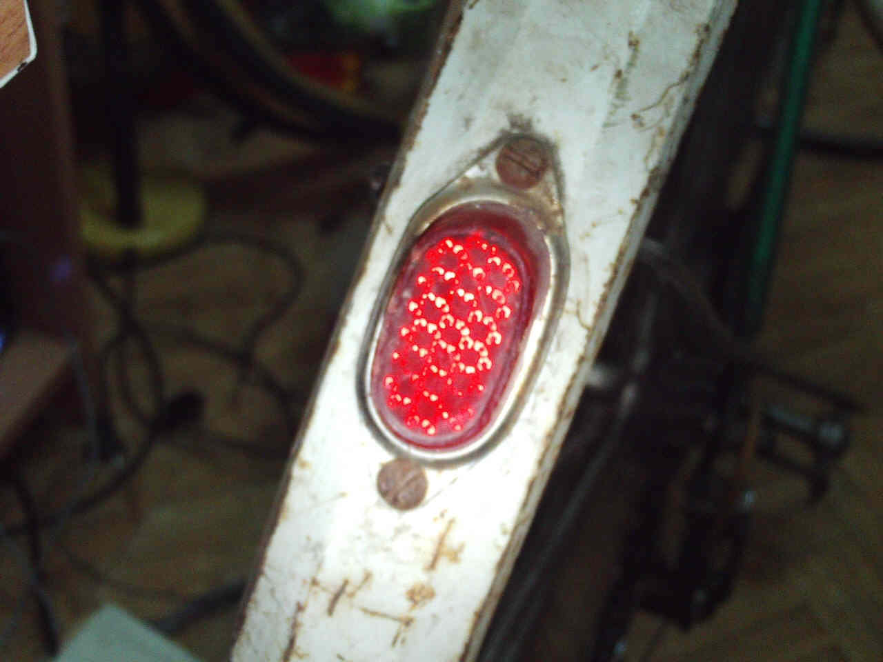 Ещё у меня в планах установить в родной "спутниковский" задний отражатель стоп-сигнал и светодиод ночного видения. Проводка в основном будет спрятана внутри труб рамы а схема с элементом питания будет находиться под седлом. Детали будут уточняться по ходу дела.