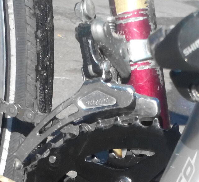 ЗЫ: мне немного непонятна Ваша проблема, при чем тут заднее колесо, передний переключатель находится сбоку от рамы над передними звездами, вот фото более крупным планом как это выглядит, если надо, сделаю фото с других ракурсов.
