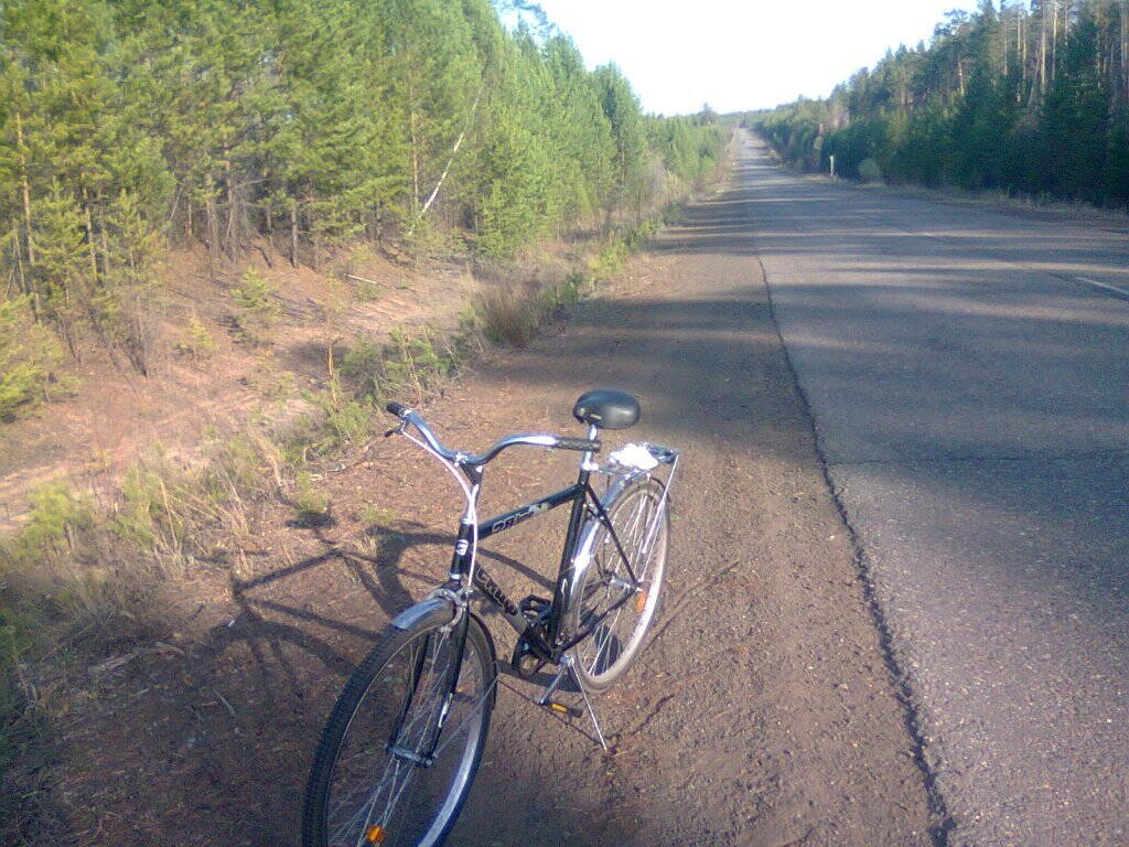 На спуске выжал около 50 км/ч. Смотрел по километровым столбикам. Одна минута, десять секунд. Ехал так быстро, что не успевал крутить педали. Это на обратном пути. А сначала ехал километров 5-6 под небольшой подъем. Устал сильно. Накат не очень хороший у заднего колеса. Плюс, когда ездишь на разбитой дороге или по сухой глине - через километров 5, заднее колесо немного смещается в дропаутах и цепь начинает провисать.