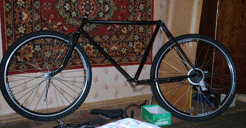 Да я надеюсь что приварена труба надёжно. Вот промежуточная фотка сборки. Первые напряги - провтыкана гайка с планетарки.. что сулит немеряный геморой, так как ход резьбы у неё редкий как вымирающий вид животных. И старое крепление подседла к седлу не подходит - покупать подседел 25,4 мм и пилить 4 мм не охота, а крепление на дюймовый подседел и трубку рамки седла и так и не нашел, будем думать. Ждем в гости будущего хозяина вела (вел делается старшому брату в подарок.....ну почти в подарок) будем решать какой руль ставить, родной гнутый на аутентичный короткий хромированный вынос, или прямой руль и современный вынос. Идея с современным рулем мне все менее и менее нравится, хотя я поначалу был только за прямой руль, но что то в этом гнутом руле есть. Да кстати! Весёлого хеллоуина!