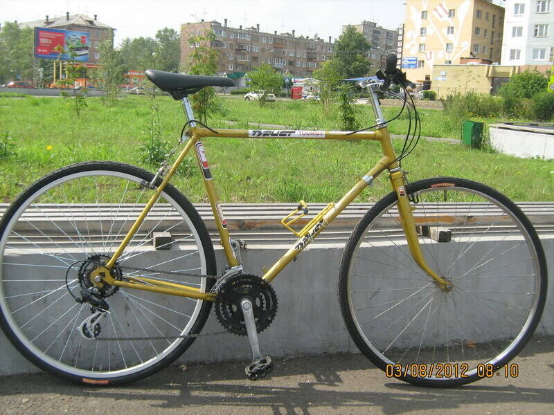 Собирал я летом Туриста-крокодила, первое время тоже система от Старт-Шоссе была, все нормально было, перекос в пределах нормы, все передачи переключались без проблем. Параллельность и симметричность выставлял долго, раму гнул руками, такая мягкая. Сзади тоже 7-ск. трещотка. Потом уже систему поставил Шимано тройную. С родной системой нету фоток жаль.