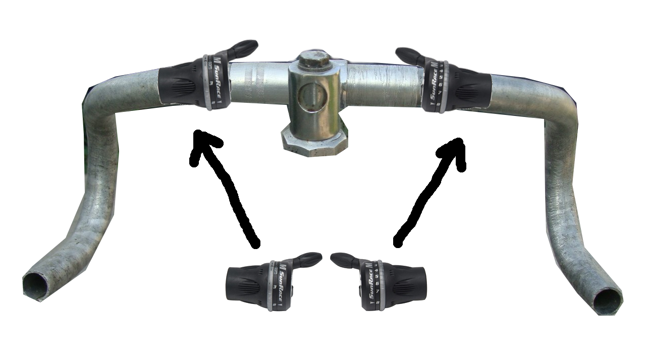 Вот увидел решил поучаствовать .Спутник ХВЗ манетки нарамные(были).Ездить можно ,но когда менял всю систему мучил голову что придумать пока не увидел Shimano SL-TX50. Сначала поставил на руль баран хвз(немного доработав напильником крепление ),а уж потом на современный(440мм ).Удобно.И проблем с установкой почти нет http://fotki.yandex.ru/users/alayksey/
