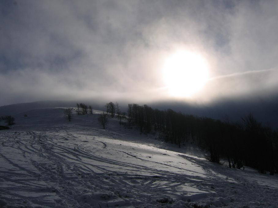На середине спуска ветр просто отключили и спускаться было прикольно, сплошной пухляк местами скованный легкой корочкой, дорога через лес хорошая. вышли к какойто сторжке охотников, чуток отдохнув и пообщавшись саборигеном, двинулись дальше!! Люди там живут с одной буржуйкой, и без душа