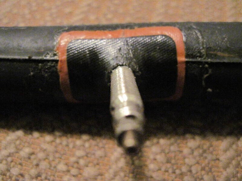 Уплотнив ділянку біля ніпеля подвійним шаром гуми від старої камери, щоб виключити протирання камери до ободу