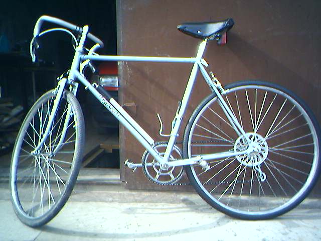 Довёл до ручки очередной ХВЗ (всё б/у, всё ещё советское). Было 2 Туриста, сейчас Старт-шоссе на туристовских колёсах (полный износ всего, разве что раме 76 года всё ни почём). Гоняю по лесу/полигону довольно аккуратно (сломал, правда, 2 вилки при прыжках на 35-45км/ч по танковой дороге – результат на лице :crazy: ). На лесных корнях, при проезде поперечных размытостей дороги (меленькие такие глубокие жестокие ручейки) и ям в заброшенном разбитом асфальте (некогда положенным военными) постоянно лопаются спицы и обода (последние по стыку раз и навсегда). Цепь/звёзды съело песком, как и каретку (недавно узнал чайник :pardon: , что есть некая силиконовая смазка как раз для таких дел вместо машинного масла), то же с переключателями. Передняя пара звёзд вечно кривая – брёвна и шоссейный клиренс тому виной. Родной шоссейный подседельный штырь погнул (неестественно был он тонок) – забил трубу от Минска. До леса нужно немного ехать по асфальту, где обожаю с горочек держать 50-59км/ч (как ни странно, моя Sigma ни разу не видела цифры 60, как не крутил :velobig: ) лёжа на руле-баране.