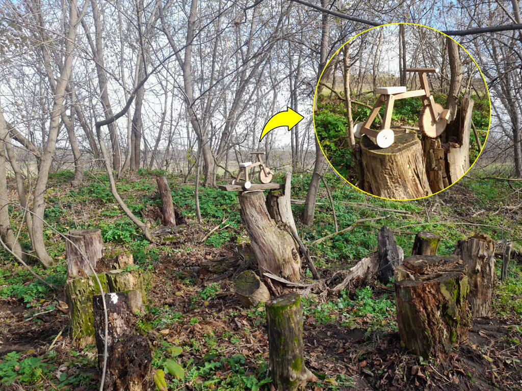 Вчера немного прокатился по тропе, заодно и кормушку повесил на дерево. Возникла идея..., на стволе этого дерева, обозначить штрихами лицо, дабы реально выглядело, как "чардрево" :). Кто будет направляться в эти края, не забудьте вкусняшек для птичек и белочек.