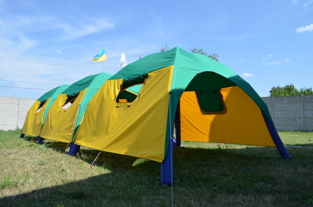 Полезная площадь одного тента - 12 м2. Имеют полезную функцию - могут стыковаться друг с другом благодаря дополнительным пролётам. Время установки одного домика - не больше 10ти минут