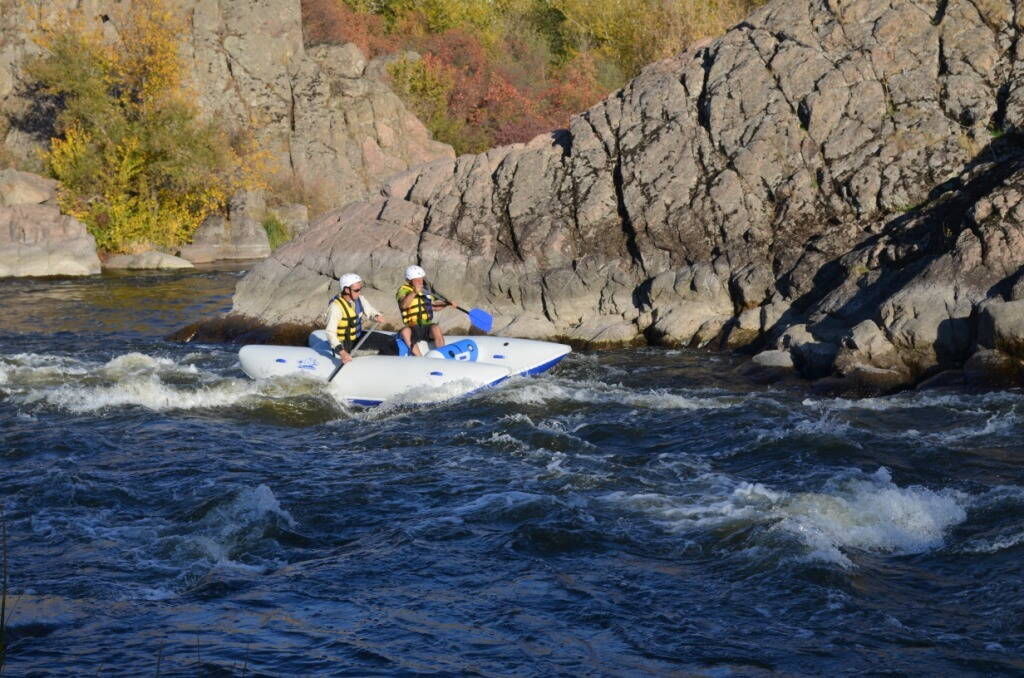 Все надувные элементы катамаранов однослойные/монобаллонные, в т.ч. и рама. На них для большей безопасности использования установлены стравливающие итальянские клапана. На катамаранах с рафтовой посадкой (двойка «Крепыш», шестерка) место сидения проклеено спец. нескользящим материалом. Гребец хорошо чувствует катамаран благодаря двойной поддержке – на палубе вклеены зацепы для стоп + коленный упор /ремень на одну ногу.