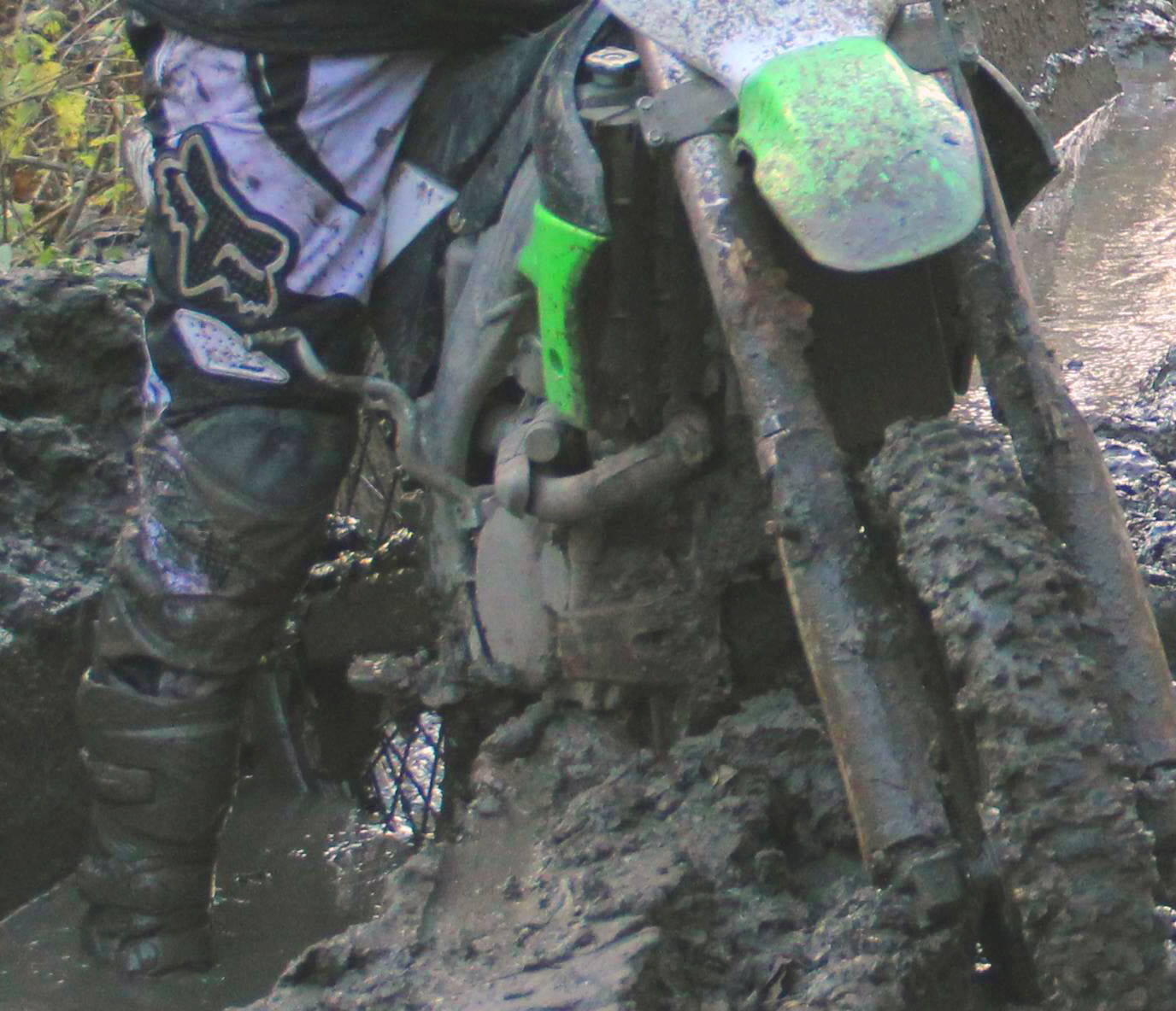 Возькались в багнюке может минут 30. Завести киком в скользкой жирной "смазке" 450-ку стало проблематично.