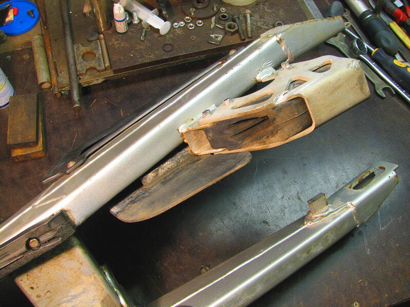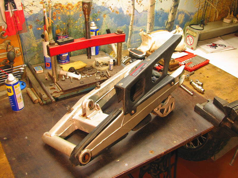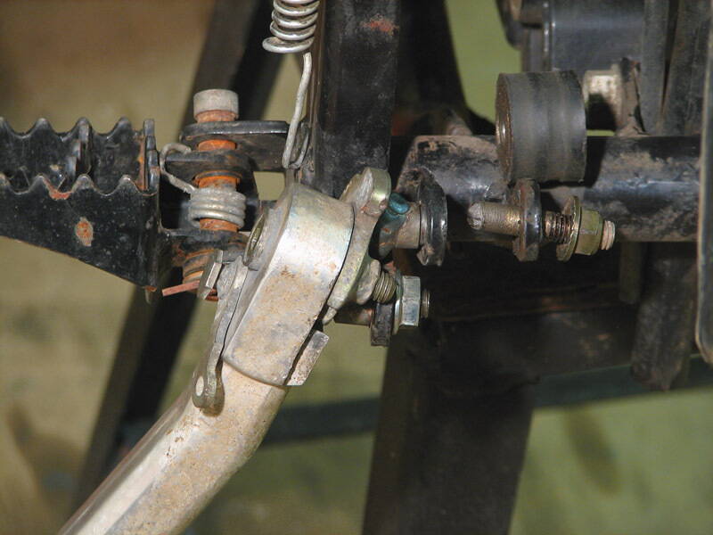 Пока удалось выявить лишь одну поломку - был лопнувшим один из болтов крепления кронштейна боковой подножки. И то это произошло по вине свежего сварочного шва, которым перекалили болт. Похоже, варили совсем недавно - цвет этого шва сильно отличается от остальных.