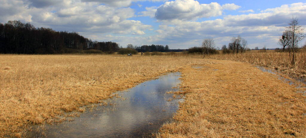На фото заливные луга левого берега Мжи. Грязь нас подловила на проезде от Высокого до с. Ржавец. )) Трек сохранил. Выложу позже.