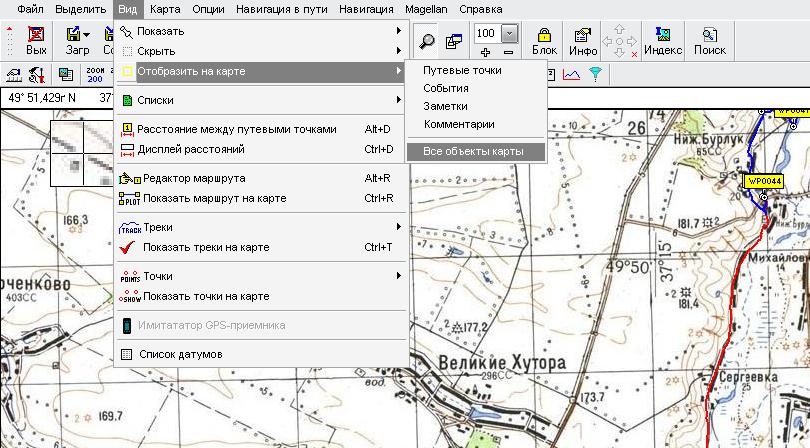 вид->отобразить на карте->все объекты карты - такого подменю меню в меню вид у меня нету
