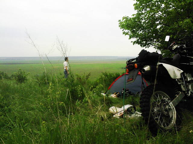Хочу поделится впечатлениями от поездки к меловой скале вблизи деревни Чепель. Ездили с Виталиком(ХР650), до места получилось нарезать 120 км, километров 20-30 асфальтом. Ехали знакомым маршрутом: Васищево, Заудье, Мохнач, Скрипаи. Дольше незнакомым: Мосьпаново-Яворское, по бергу реки красная балаклейка(дорожка суперовская), Пришиб-Балакля-Байрак - асфальтом, т.к. х.з. есть там проезд по бездору или нет, слишком много болот и речек. И наконец Чепель. От чепеля по пойме донца, а она в том месте очень широкая, много гунтовок, скалу видно издалека. Есть песчаный пляж, прямо возле места слияния Чепеля и Донца. Лагерь организовали прямо на скале - вид супер, видимость на много километров, короче поездка уже на тот момент стоила этих ощющений :smile: .