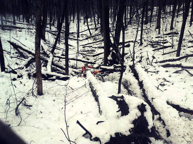 Будет дождь, одеваться соответственно, желательны рабочие перчатки, мы с сыном берем бензопилу, топор, саперную лопатку. По плану мероприятия, пройти пешком и наметить интересные треки, убрать (а где необходимо, добавить) завалы деревьев, "причесать" завалы кирпичных блоков, попробовать все это проехать.
