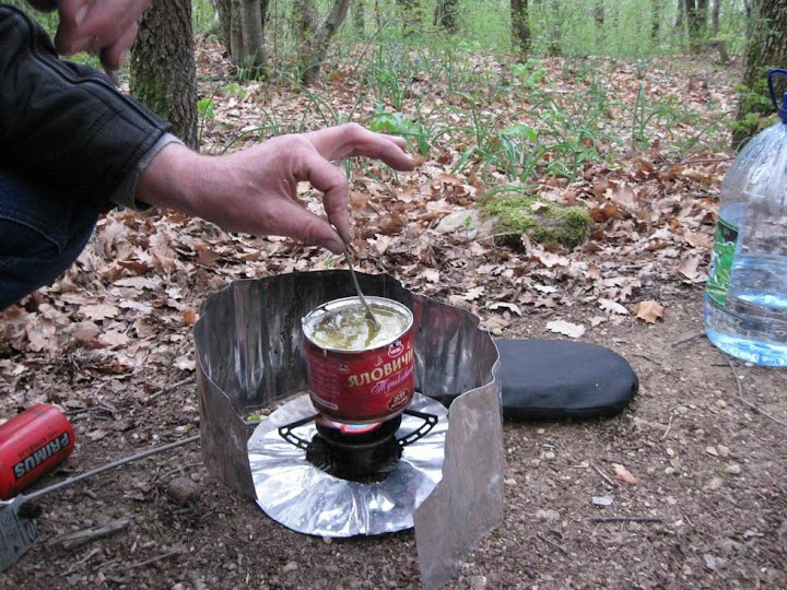 Разбив палатки мы приступили к приготовлению чая. Володя пошел колдовать над примусом: