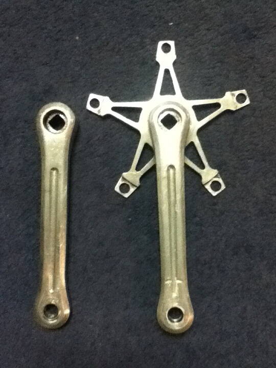 Я бы поставил на клон Stronglight. И то только потому "клон", что на фото не видно - есть ли надписи вообще... У Stronglight они были обычно на лицевой и тыльной сторонах шатунов (на тыльной - в том числе и по окружности вокруг квадрата).