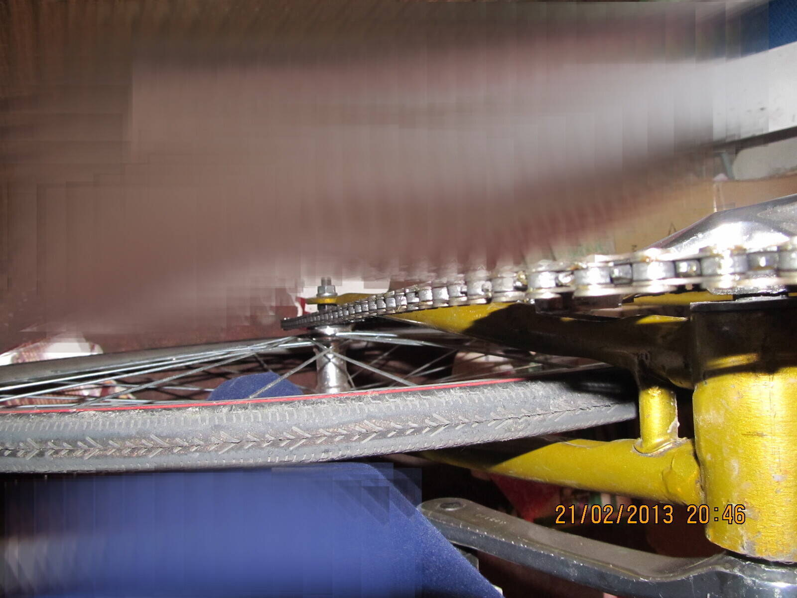 ведущая звезда от центра подседельной трубы не больше 40мм(в минус ещё лучше) с этим условием должно быть всё в пределах нормы с задним колесом.если нет кустарщины.