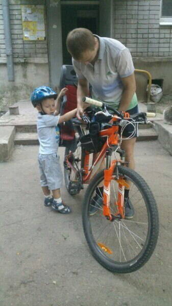 Особенности, особые приметы: На велосипеде стояло крепление для детского велокресла bellelli. Из-за катания ребенка на велокресле верхние перья сильно потерлись с наружной стороны (краска стерлась полностью до металла) в этих местах я обмотал верхние перья черной изолентой.