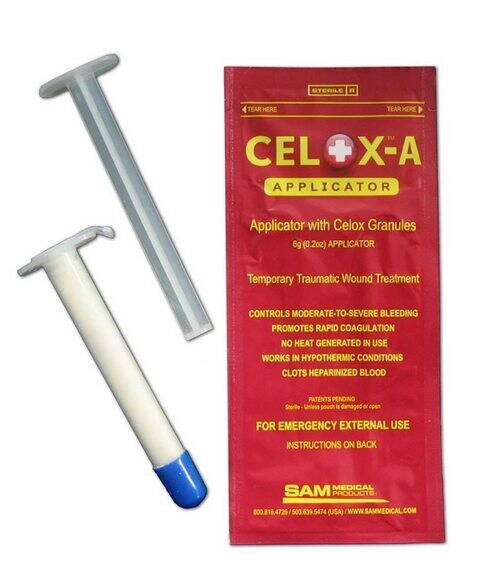 Celox, он как бы не для обработки раны, он для остановки обильных кровотечений, ну и внутренних кровотечений.