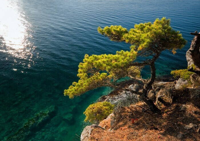 Скалистый берег,купаться не совсем удобно.
