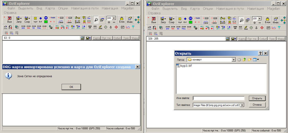 Доброго времени суток,помогите новичку примите в свои ряды.После создания карты GeoTif в GlobaiMap.Не могу открыть в Ozi,захожу файл-импорт карт-одна DRG карта жму ок пишет зона сетки не определена жму ок появляется окно загрузки выбираю карту GeoTif жму ок выбивает ошибку.Скажите у кого-то было такое и что делать?Заранее спасибо.