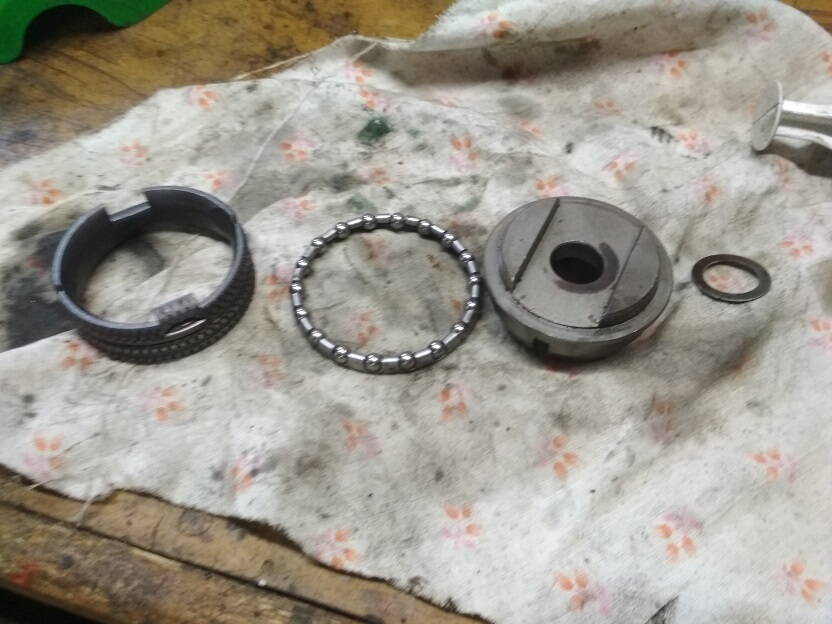 Далее раскручиваем конус с обратной стороны что бы снять ось с шестернями и толкателем. Надо делать аккуратно,что бы сам толкатель не потерять. Он маленький.