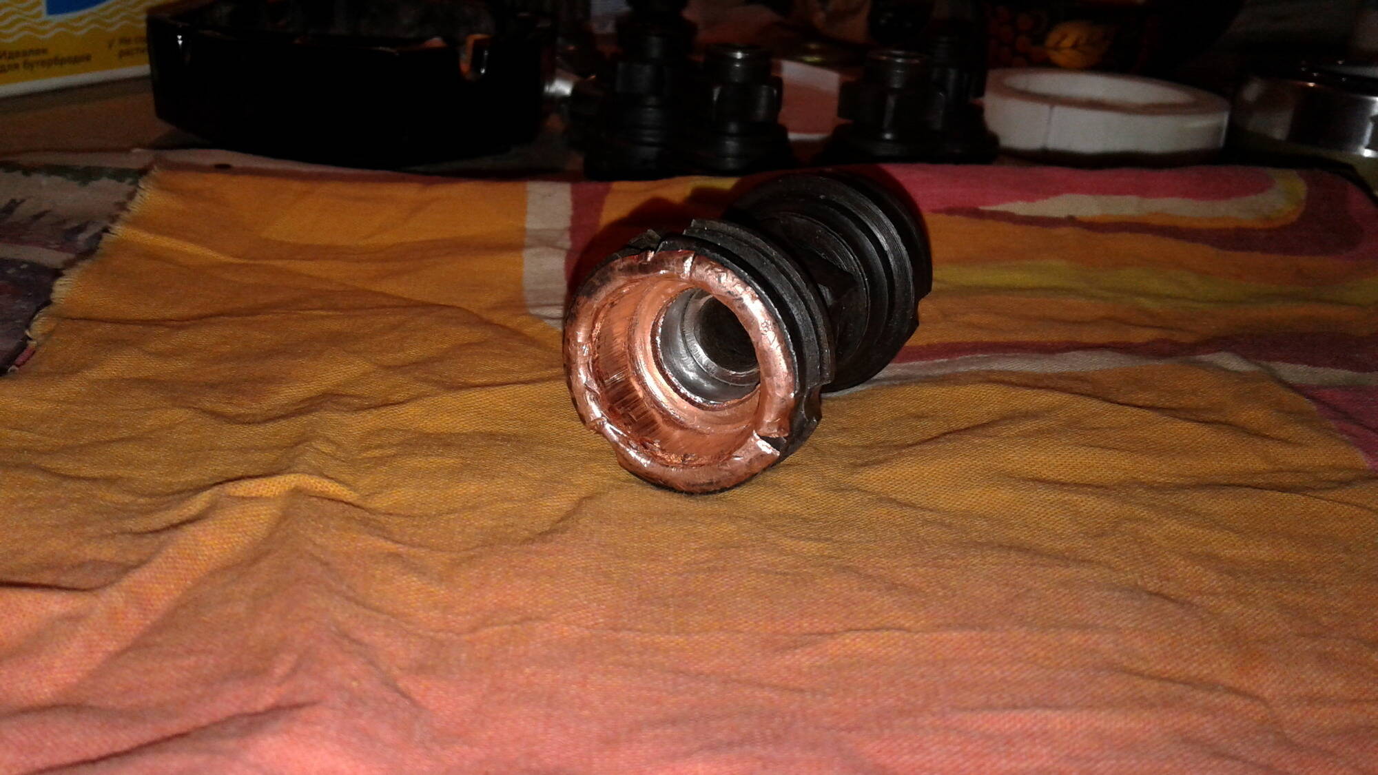 После запрессовки, изнутри обварить, для чего была изготовлена медная чашка, чтобы при сварке, не заср... внутреннюю поверхность.
