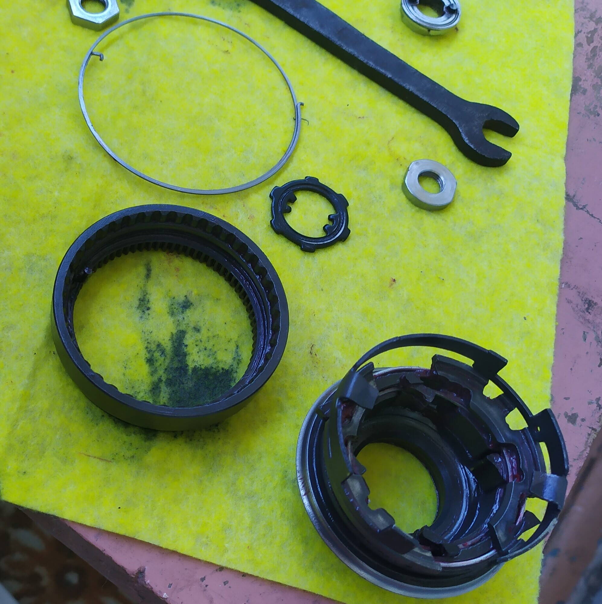 В общем кое как собрал несколько раз. Первый раз был хруст и скорости непойми как шли. Первые четыре наверное одинаковые были. Последний раз собрал и все скорости есть но всё равно хрустит пытается спрыгнуть. Если отстрить по 4ой по рискам то ещё больше хруст и слетает время от времени стабильно.
