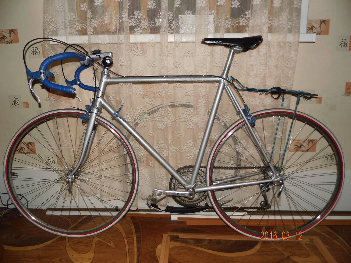 Тормоза и переключатели стоят Campagnolo (какие именно - понятия не имею). Передняя втулка - Shimano HB-F105, задняя - Maillard Helicomatic. Обода: передний - Mavic module e2, задний - Mavic MA40. Всё это я и купил. Ничего не делал, только сменил смазку во втулках и поставил резину 23*700 и багажник от туриста.