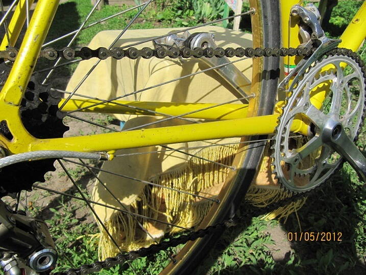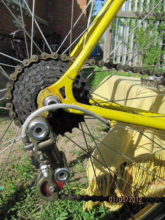 Задний переклюк хвз спецзаказ весь перекошенный. Набор звезд сильно люфтит на втулке. Цепь нормальная, не задубела. Вчера выкинул из нее четыре звена, а то на передней меньшей звезде она вообще сильно провисает.