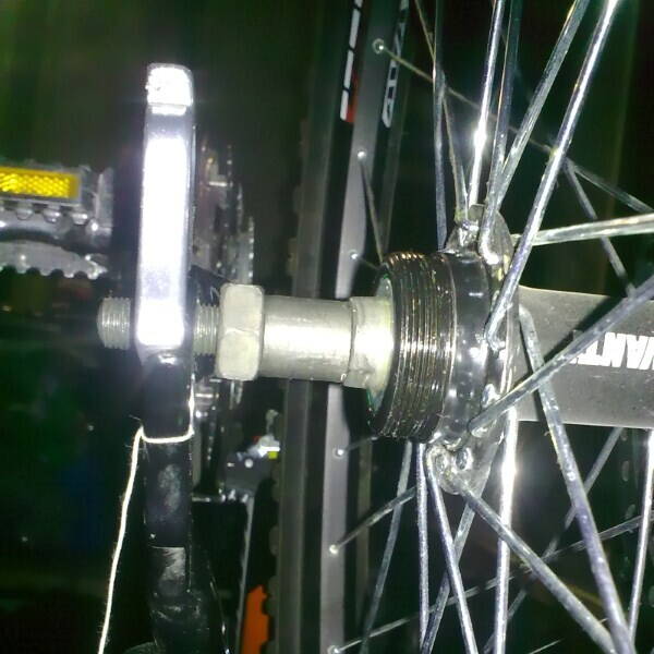 Спицы не натянуты, местами вообще болтаются. Зонт заднего колеса неправильный.