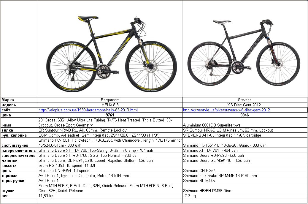 стивенс - дорогой немецкий бренд насколько мне сам продавец, ничем особенным не выделяется, хотя продукция гуд. А Ваши кросс-гибриды по обвесу сильно разные, Бергамонт на пару ступеней выше (сам два дня назад стал обладателем товара этой фирмы). А хотите реально крутой кроссовый велосипед, то посмотрите на велосипеды Каньен. У нас их очень мало встречается