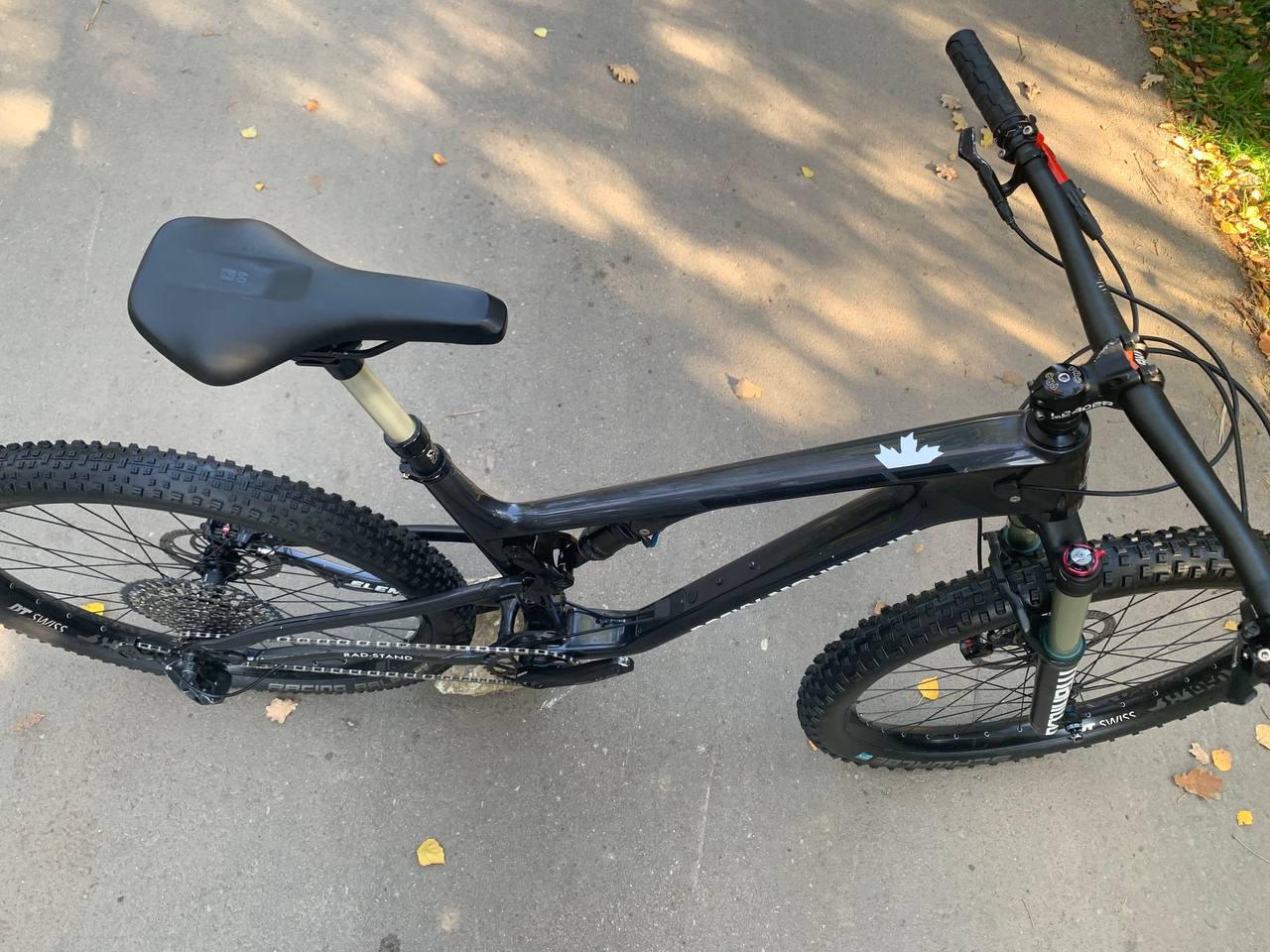 Кастомний карбоновий підвіс, в оригіналі йшов на 29 колесах, поставлено 27,5 жирний вілсет, безкамерні покришки, спереду плюсова покра для ідеального контакту з дорогою і підвищеної прохідності, позаду 2,25 для кращого накату.