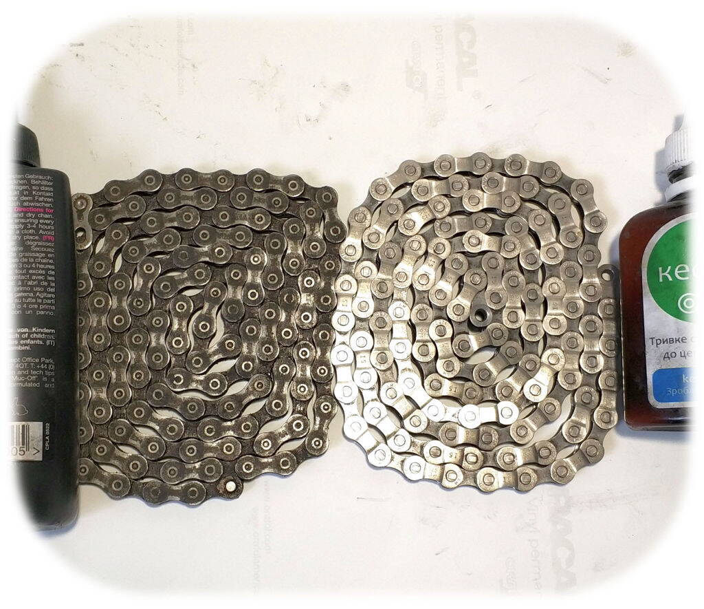 не нужно. просто почистить жёсткой щёткой при необходимости (можно зубной) и намазать. если цепь мокрая – протереть тряпкой