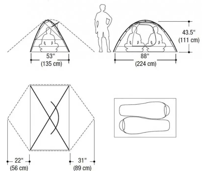 Розмір внутрішнього намету: 230 х 140 х 111 см.;