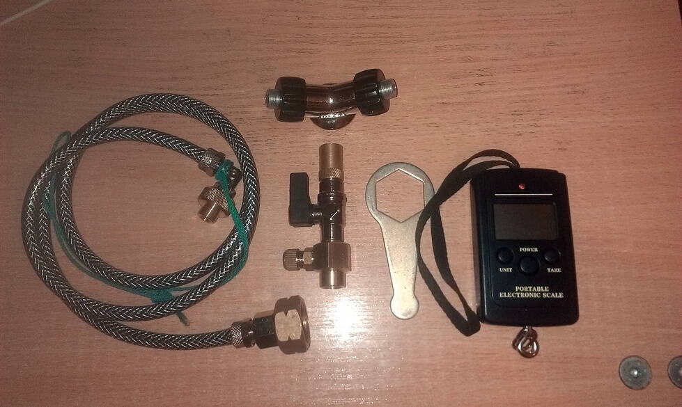 Шланги и переходники для заправки от советского баллона.