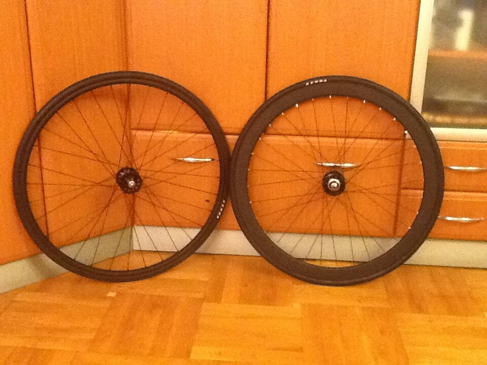 Обода фикси юа (задний высокий,перед низкий),втулки дукас на промах фикс/сингл, спицы перед mach1, задние не помню но вылились в кругленькую сумму, резина кенда концепт,камера мишелин.