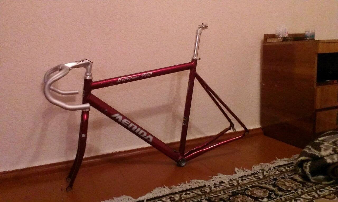 Продам фреймсет мерида, рост - 58, материал-алюминий, рама шоссейная, но с дропаута петух снимается,так что можно и фикс построить. В комплекте идет подсидел - Uno, вынос - Deda Murex, баран - Ritchey, и рулевая. Вес - 2.4 кг