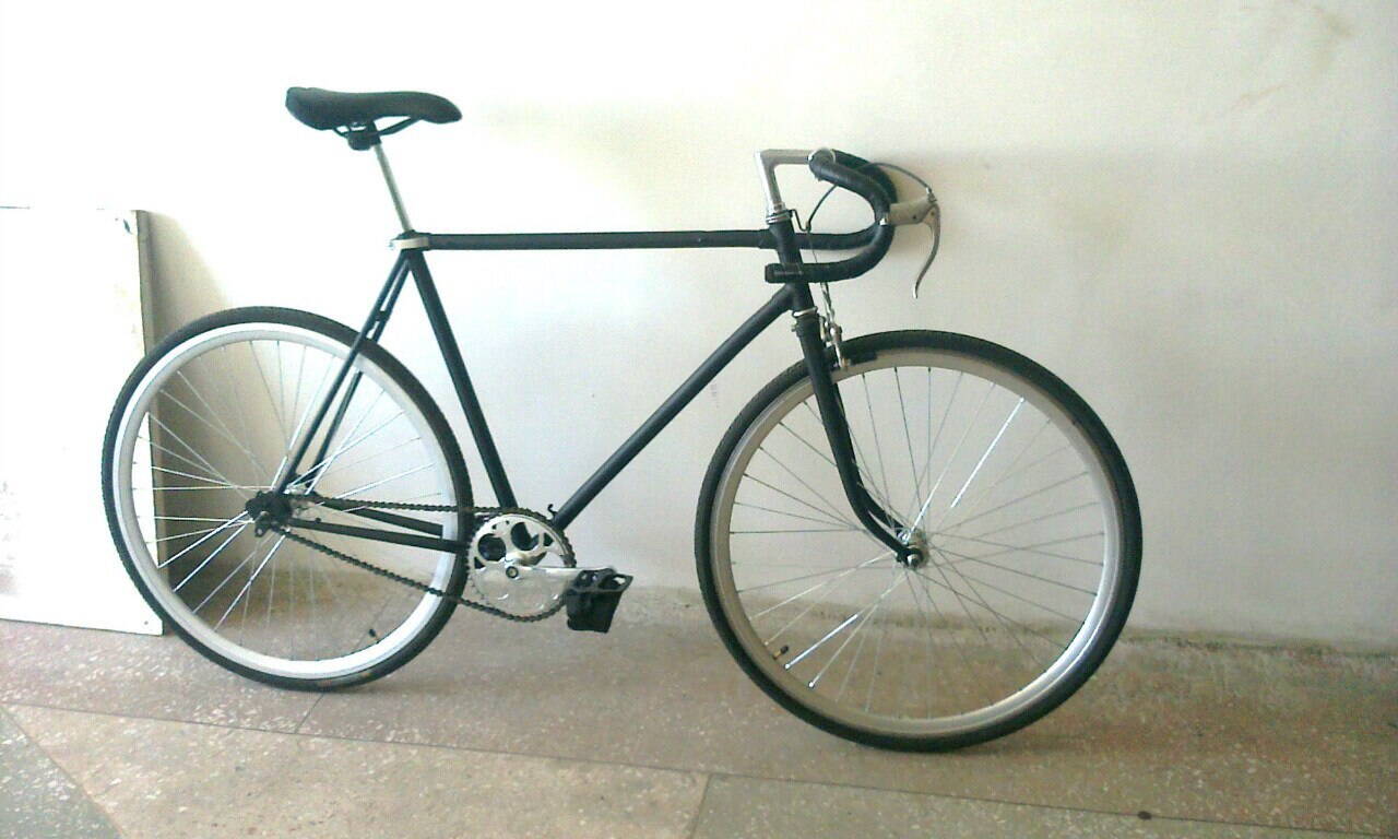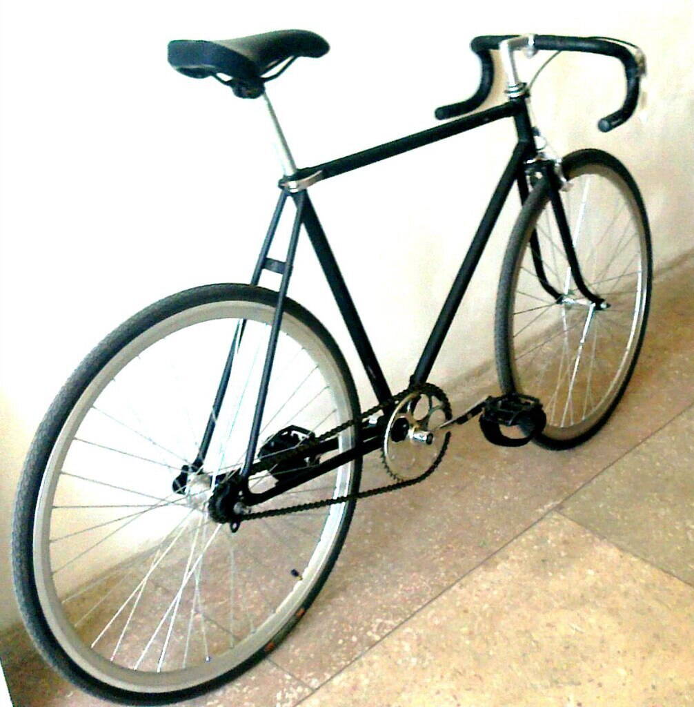 Отличный фикс, 56 рост. система хвз, колеса, педали, тормоз новые. Вилка не родная. Хорошо уступлю. тормоз заменен на новый (современный, марки не знаю), на педалях туклипсы метал.